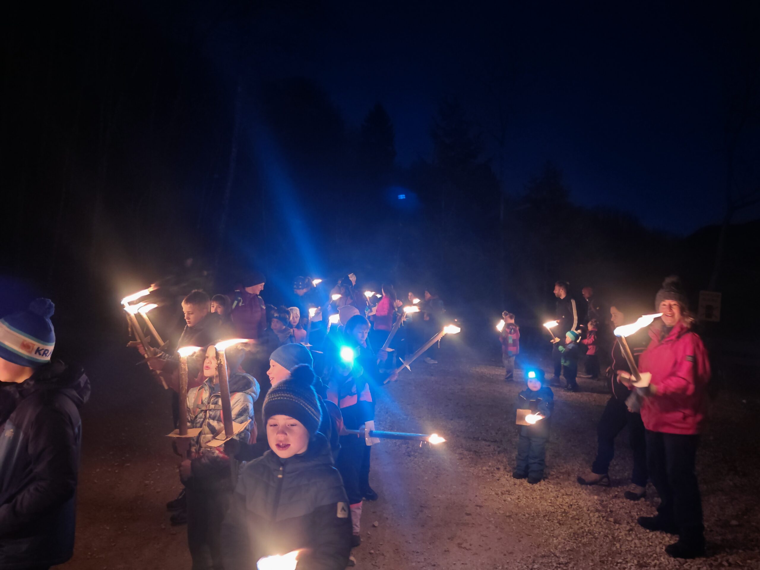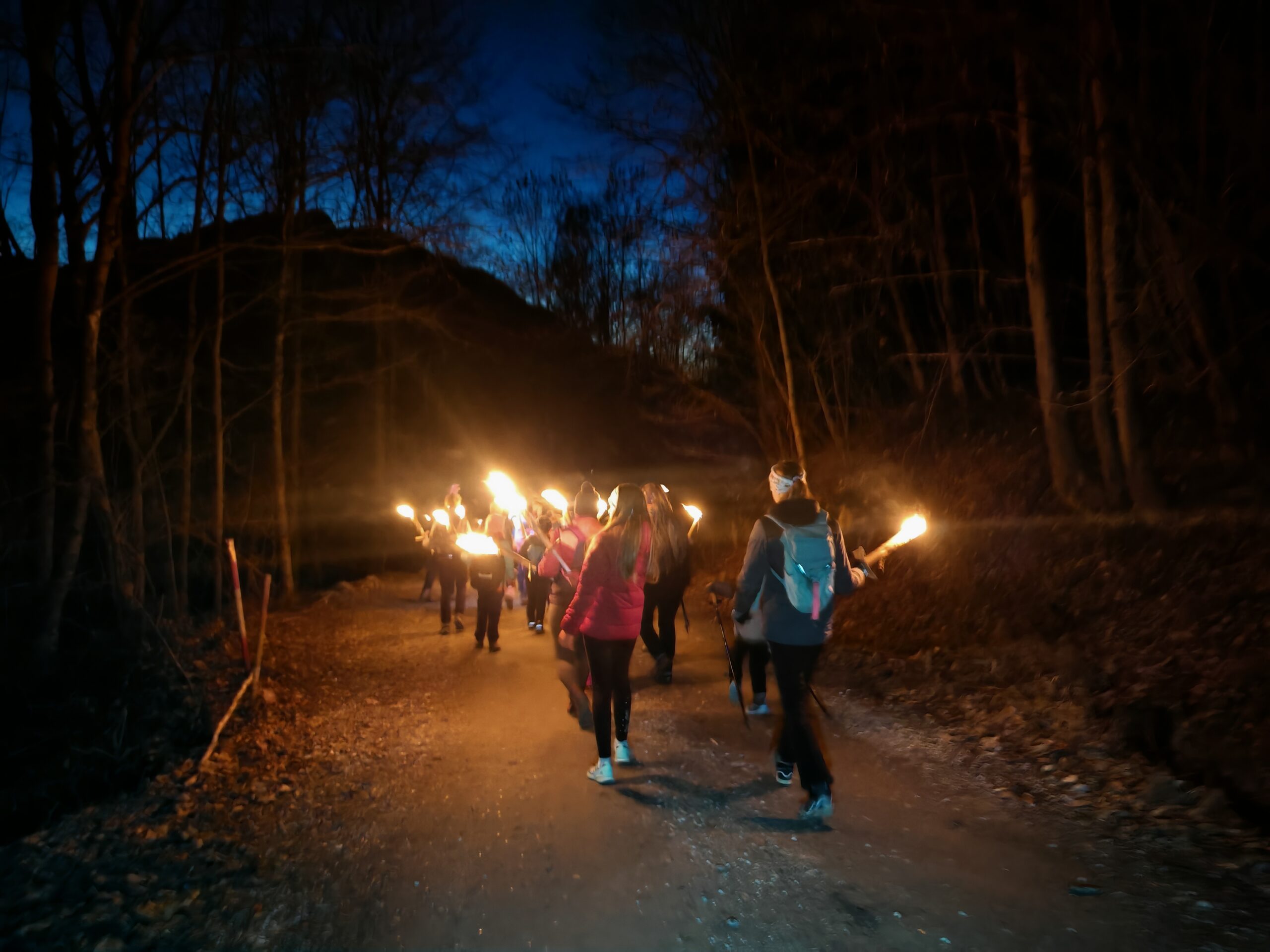 Fotografije z nočnega pohoda z baklami.