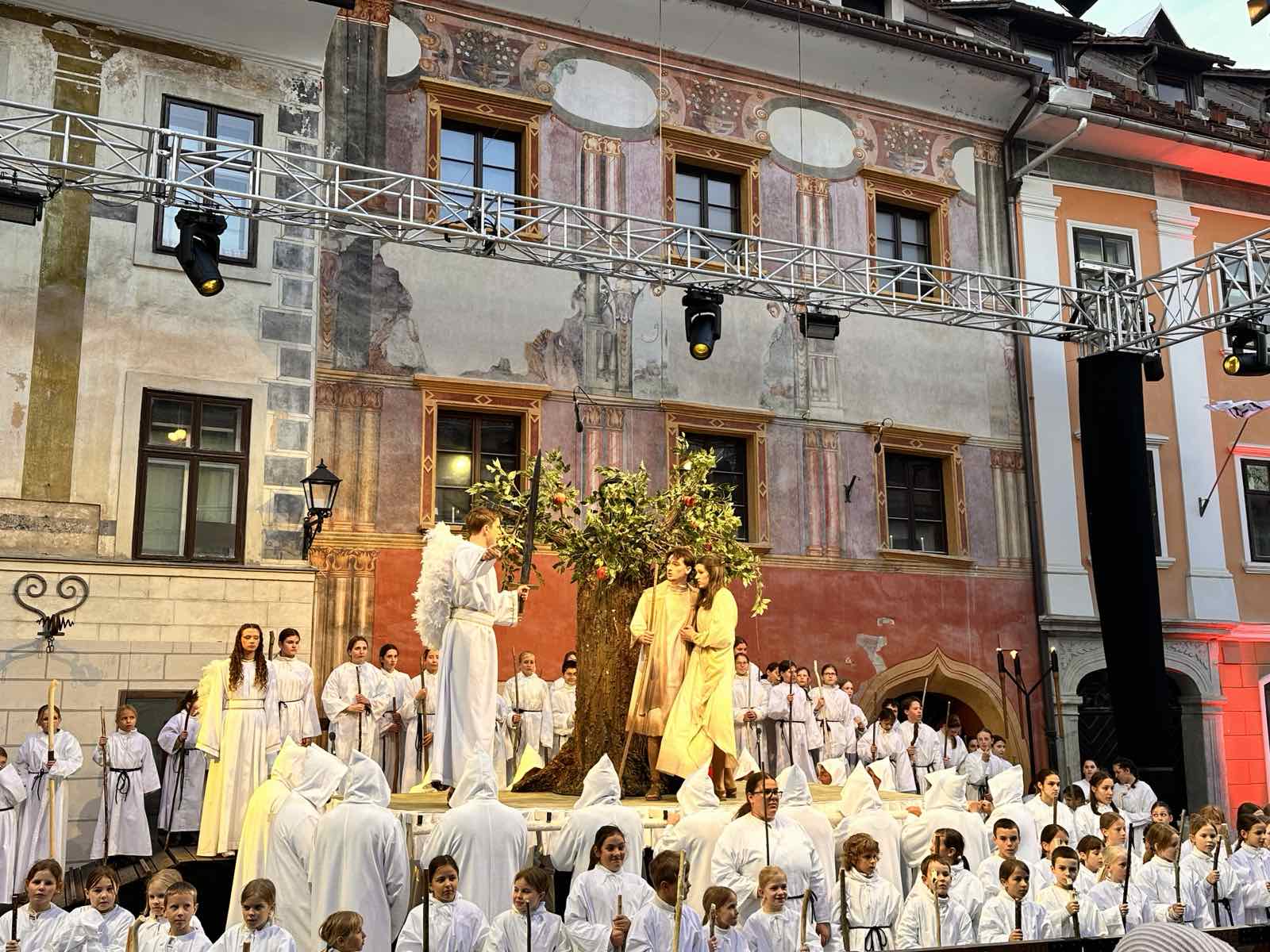 Z učenci, ki obiskujejo turistični krožek, Unesco in medkulturno povezovanje ter nadarjenimi smo si ogledali Škofjeloški pasijon.