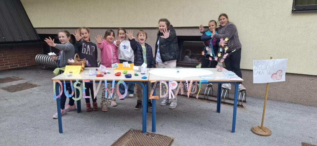 Ob svetovnem dnevu duševnega zdravja smo na naši šoli pripravili stojnico, ki so jo oblikovali učenci interesne dejavnosti »Podajmo si roke«.